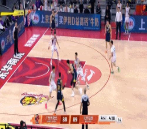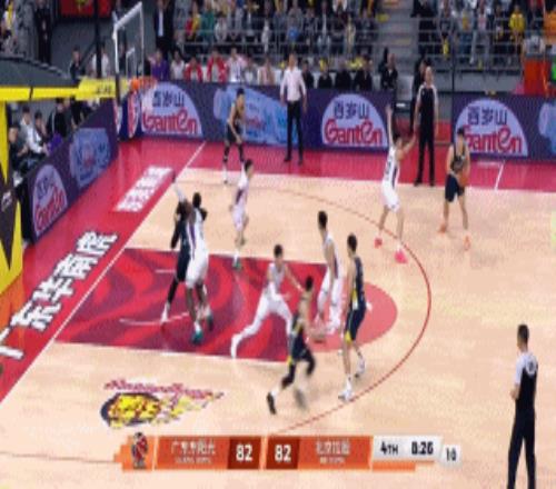 7分37秒,胡队长不信邪继续强杀终于制造2+1,一回合后杜润旺反击飚进三分,胡明轩终于打开得分账户,果断命中外线三分连得6分,广东9-0反超北控。