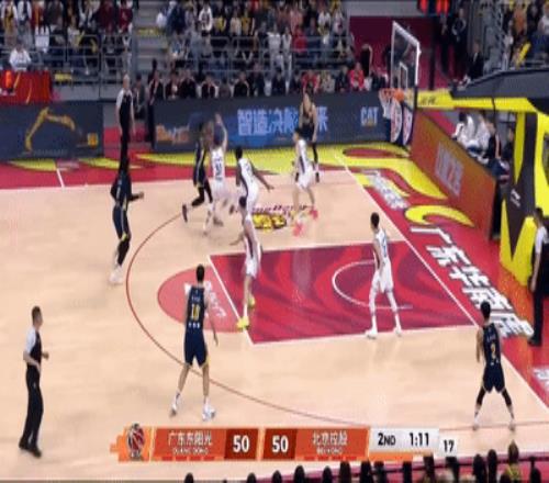上半场广东凭借胡明轩节末阶段的关键3+1,艰难取得56-55领先。